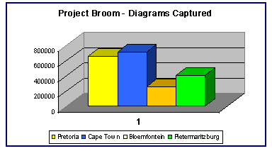 In May 1999, after the completion of nationwide pilot projects, project Broom commenced in the offices of the Surveyor General in Pretoria, Cape Town, Bloemfontein and Pietermaritzburg. The aim of this project was to capture all alphanumeric information contained on diagrams and general plans approved prior to 1997 in a Microsoft Access database. This data included document references, designations, extents, servitudes, leases, deeds references, endorsements on these documents, survey records, parentage, etc.